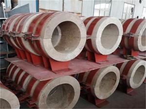 經(jīng)過多年生產(chǎn)實(shí)踐及與研究機(jī)構(gòu)的多次合作,在傳統(tǒng)絕熱材料配方的基礎(chǔ)上,開發(fā)出了以多種硅酸鹽混合物為基礎(chǔ)骨架原料,配以輔料,經(jīng)過嚴(yán)格的配比混合靜壓成型烘干檢驗(yàn)等多道工藝加工而成。成型后的絕熱材料具備硬度高、強(qiáng)度好、導(dǎo)熱系數(shù)小等特點(diǎn)。隔熱管托可分為多種形式,如滑動管托,固定管托,以及導(dǎo)向管托。對于滑動管托來說,底座與管托之間的摩擦系數(shù)也是影響管托參數(shù)的一個重要性能指標(biāo)。采用不銹鋼板改性聚四氟乙烯板相接觸;這樣做的目的是大可能減少了管托與底部滑動板之間的摩擦。隔熱管托一般安裝于室外化工管廊上,工作環(huán)境中除有常規(guī)的大氣腐蝕外,還伴有少量的化學(xué)物質(zhì)腐蝕。若管托外部不采取特種防腐處理措施,往往使用一年下來其外表就銹跡斑斑。