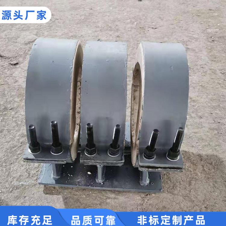 2、管夾內配有硬質保溫層和軟質保溫層,其中管徑在DN500以下,軟質保溫層厚度為20-30mm,硬質保溫層為≥50-60mm,DN500以上為≥60-100mm,當溫度t=250℃時,導熱系數為≤0.2W/m.k,抗壓強度為≥2.0Mpa。